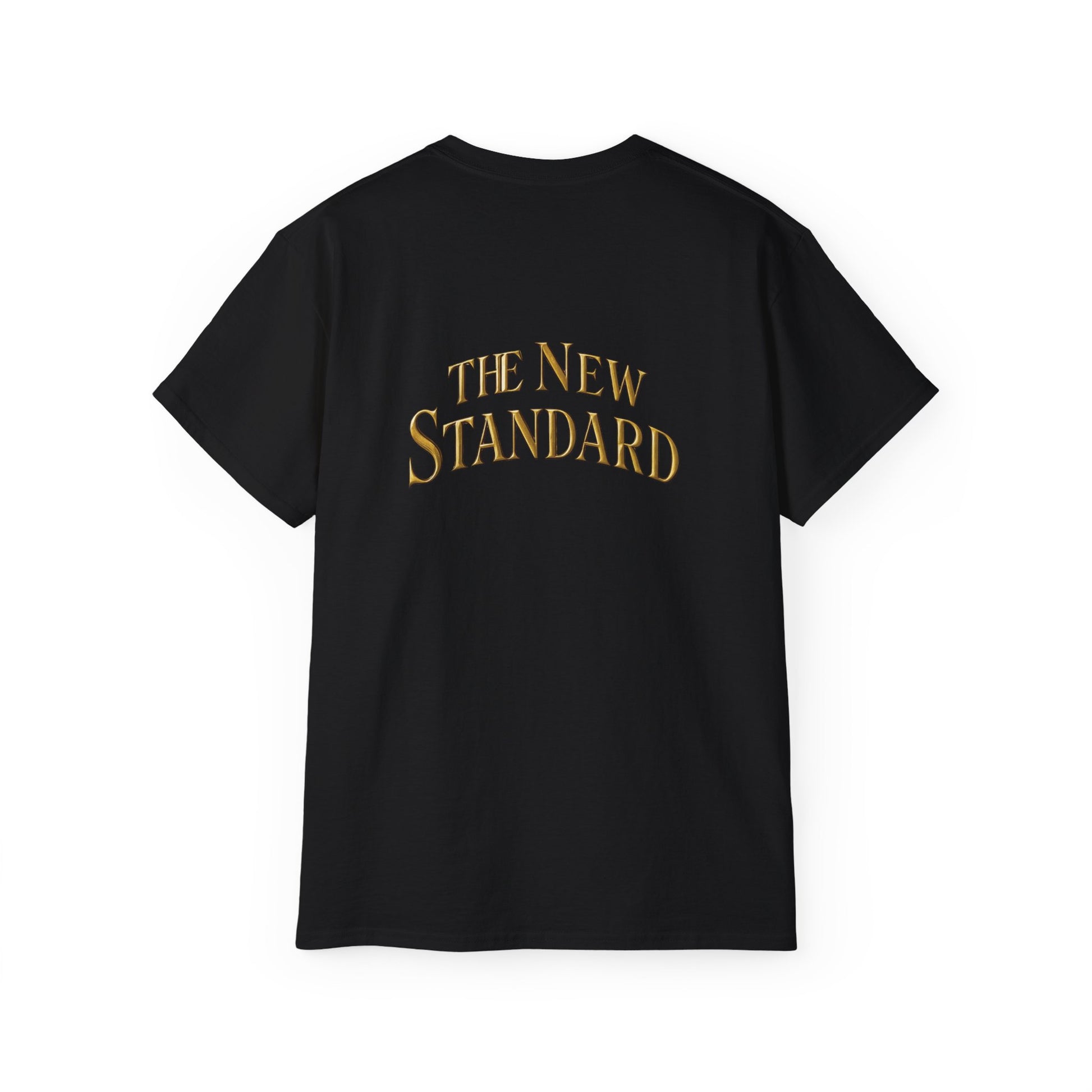 This midweight cotton tee carries a quiet confidence. Clean lines and a simple front emblem read like a personal badge, while the curved ‘The New Standard’ on the back feels like a statement you wear without saying a word. It’s for people who value substance over flash — those who dress with intention: muted colorways, a slightly roomier fit, and a soft vintage hand that settles in with each wash. Slip it on for coffee runs, creative workdays, or a low-key night out. The tear-away label and stabilized shoulders keep it comfortable all day. Over time it becomes part of the routine: the go-to top that looks lived-in but still sharp.